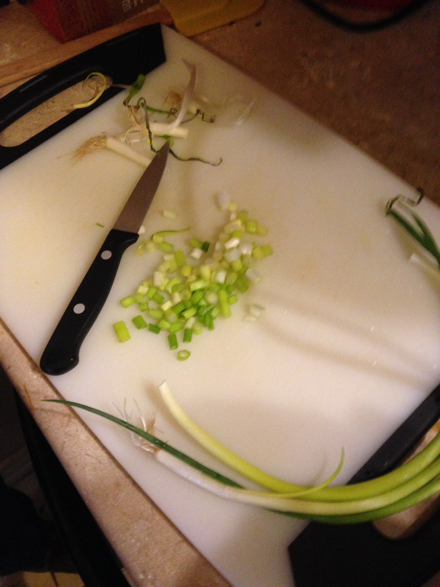 So I mentioned that the onions were a little past their prime (as you can see here).  But they didn’t smell funny so I just threw away any part that looked questionable and sliced the remainder.  It felt way better than throwing away 6 green onions 🙂