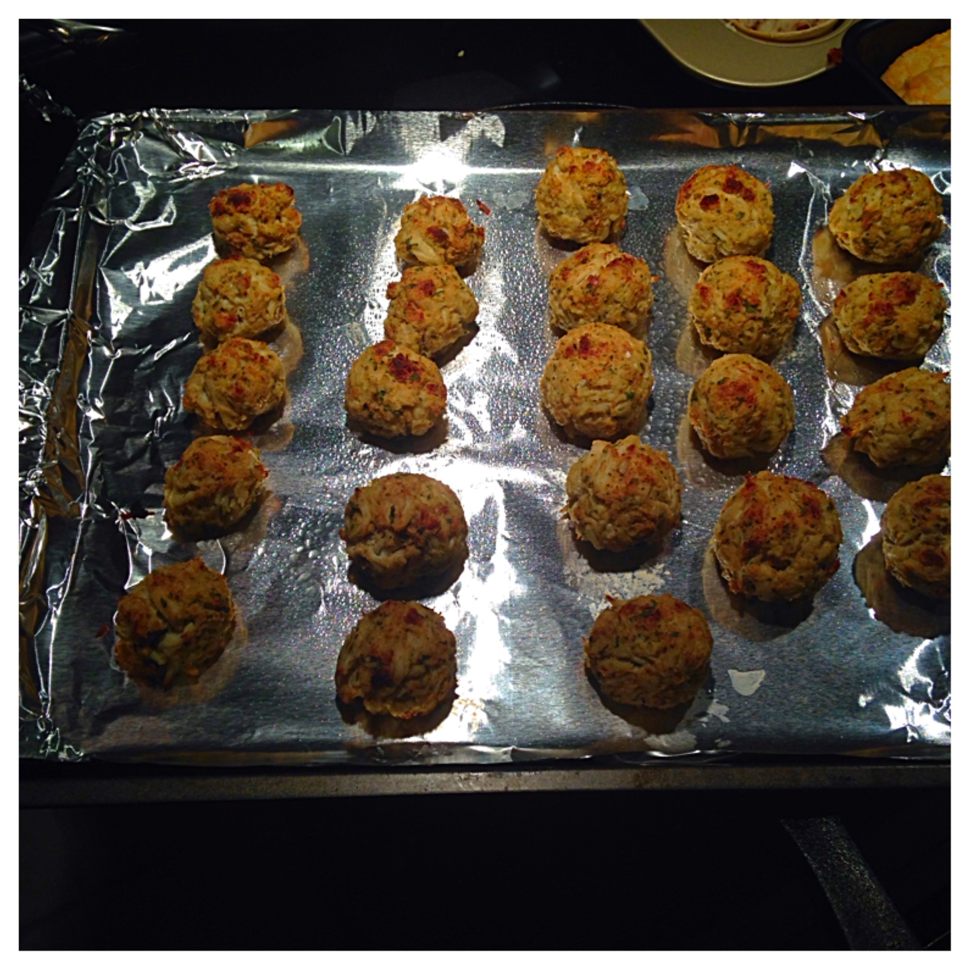 My thoughts on the recipe: I really liked that these have a lot of crab in them. The stuffing and egg didn’t make these into little cake balls like you sometimes find with crab cakes that have too much cake and not enough crab. I think my biggest problem with this recipe was not with the recipe itself, but with me. I need to admit that I am just not a huge fan of Old Bay Seasoning. Every time I use it, I think, “This is popular stuff, maybe I’ll like it this time.” And every time I disappoint myself. I would like to try this again and season them differently. The lemon wasn’t too much like you sometimes find with seafood dishes. I just think the Old Bay, while quick and easy, made these less satisfying to me.